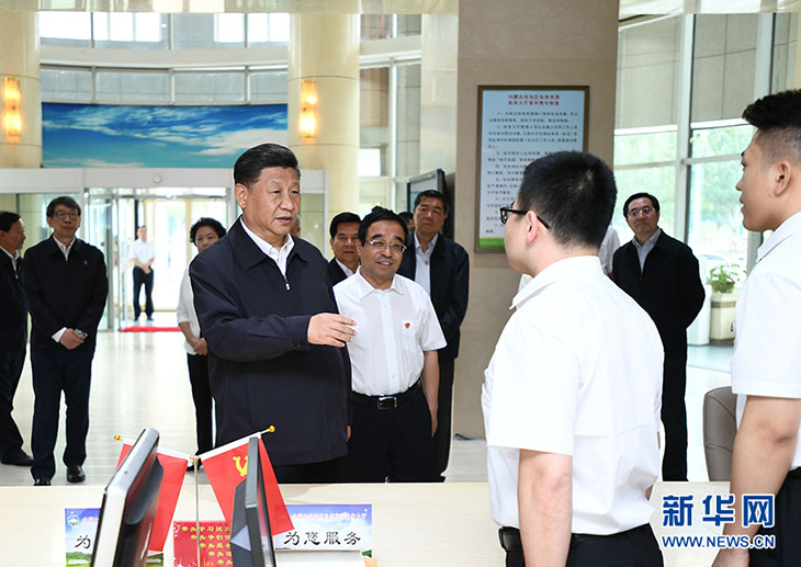 7月16日上午,习近平在内蒙古自治区自然资源厅自然资源政务大厅同工作人员交谈,